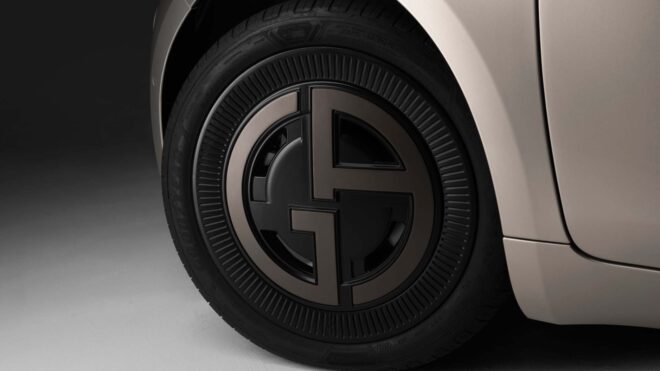 Dış tasarımın en dikkat çekici özelliği ise GA logosunu büyük ölçekte belirgin bir şekilde gösterecek şekilde özel olarak tasarlanan jantlar. Bu jantlar göz alıcı görünmekle kalmıyor, aynı zamanda aracın uzaktan bile dikkat çekici bir izlenim bırakmasını sağlıyor. Tasarım, projenin işbirlikçi doğasını vurgulamak dışında, aynı zamanda incelikli üç boyutlu bir yüzey sayesinde aerodinamik verimliliği de artırıyor. Jantlar, sofistike, iki tonlu anodize yüzeye ve ince yanal kanallara sahip olup, genel izlenime ekstra bir incelik ve zarafet katıyor.