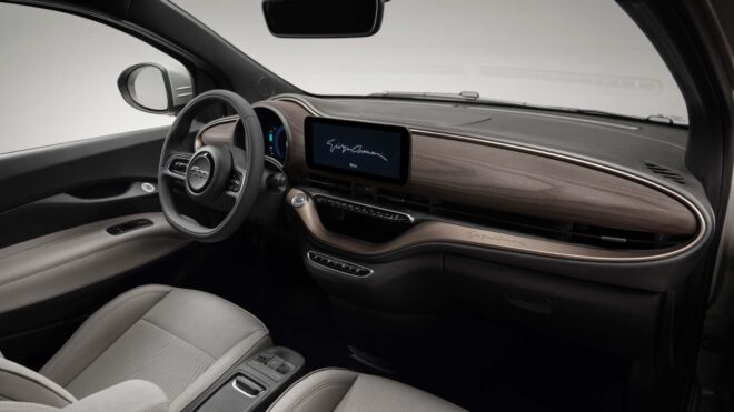 FIAT 500e Giorgio Armani Collector’s Edition’ın iç mekânı, geleneksel el sanatları tekniklerini anımsatan şerit dikişler ve orta koltuk eklerindeki üç boyutlu desenlerle yansıtılan olağanüstü işçiliğe dikkat çekiyor. Kabinde kullanılan malzemeler, ileri teknoloji ve geleneksel yöntemleri bir araya getirerek zarafeti ve en yüksek kalite seviyesini yansıtıyor. Yenilikçi detaylar arasında gösterge panelinde lüks kumaşa benzer bir yumuşaklık sunan lazer kesim ahşap bir ek yer alıyor. Bunlara, ince işçiliğe olan bağlılığı vurgulayan ayrıntılı el işçiliği unsurları, örneğin gösterişli nakışlar da eşlik ediyor.