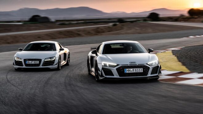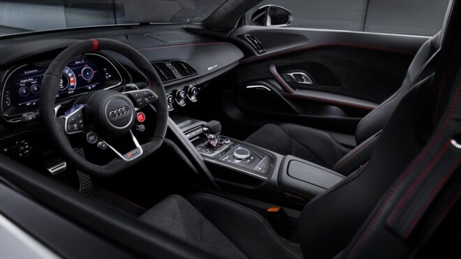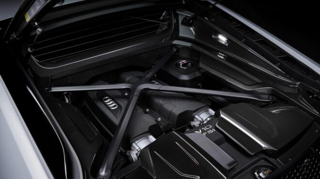 Toplamda 333 adet üretileceği açıklanan R8 Coupe V10 GT RWD, V10’nun bildiğimiz dinamikleriyle kullanıldığı son otomobil olacak. Grup içerisinde kısa süre önce Lamborghini’nin Aventador üzerinden gerçekleştirdiği vedayı akıllara getiren versiyonda, 5,2 litrelik atmosferik motor 620 PS güç ve 565 Nm torkla geliyor. Bu rakamlarla birlikte gövde üzerindeki ekstra karbon fiber dokunuşlarla, standart RWD’ye göre 20 kilogramlık bir hafifleme de karşımızda. Otomobil tüm parçalarıyla toplamda 1.570 kilogramlık ağırlık değeriyle geliyor. Şanzıman kombinasyonu ise 7 kademeli otomatik ile gerçekleştiriliyor. Tüm elemanların bir araya gelmesiyle yeni R8 GT, 0’dan 100’e 3.4 saniyede, 200 km/s sınırına ise sadece 10,1 saniyede çıkıyor. Erişilebilecek maksimum sürat ise 320 km/s olarak paylaşıldı.