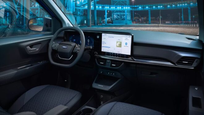 “Digiboard” gösterge panelinde Ford’un en yeni SYNC 4 sistemine sahip 12 inçlik dokunmatik orta ekran bulunuyor. İlerleyen dönemlerde Türkiye marketinde de yer alacak olan aboneliğe dayalı Bağlı Navigasyon trafik, park, şarj ve bölgeye özgü koşullarla ilgili güncellemelerle üretkenliği artırabiliyor ve sürücünün iş yükünü azaltabiliyor. Kablosuz Android Auto ve Apple CarPlay uyumluluğu ise standart4. Yenilikçi, sınıfında benzersiz “Office Pack” dizüstü bilgisayar kullanmayı, evrak doldurmayı veya kabinde mola vermeyi daha kolay ve rahat hale getirmek için katlanabilir düz bir çalışma yüzeyi ve aydınlatma içeriyor.