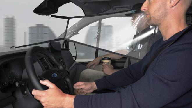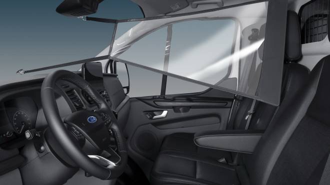 Ford’un Avrupa bayileri ve belirli pazarlardaki Online Shop aracılığıyla sipariş edilebileceği açıklanan ürün, basit kurulum için entegre kayışlara sahip şeffaf polivinil klorür (PVC) plastikten imal ediliyor. Ford, bu kalkanların yolcu konforunu, iç mekanı veya ısıtma ve havalandırma sistemlerinin çalışmasını kısıtlamadığını söylüyor. Sunulan paket içerisinde, kabinleri önden arkaya ve soldan sağa bölen toplamda dört ayrı yapılandırma mevcut. Ayrıca montaj noktaları ve kayış konumları, bir kaza durumunda yan ve perde hava yastıklarının normal açılmasını sağlayacak şekilde dikkatlice ayarlanmış durumda. Ürün önümüzdeki süreçte Transit / Tourneo Connect versiyonları için de tercih edilebilir olacak.