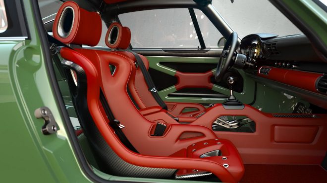 Geliştirmenin kokpit ayağına baktığımızda dışarıda tamamlayıcı renk olarak sunulan kırmızının daha hakim olarak ele alındığını görüyoruz. Koltuklar başta olmak üzere karbon parçaların varlığını hissettirdiği bu bölümde aracın kimliğini bozacak eklemelerden kaçınıldığını görmek fazlasıyla sevindirici. Singer’in üretim tesisinde sadece 75 adet üretileceği açıklanan modeller için rezervasyon süreci önümüzdeki günlerde başlayacak.