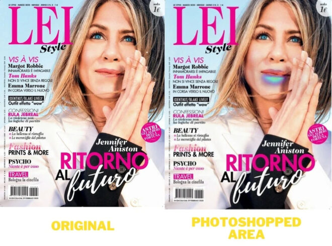 Within Health, FAL Detector’ı kullanarak Aniston’ın yüzünün yakından çekildiği 20 dergi kapağını inceledi. FAL Detector, görüntülerin yüzde 50’sinde otomatik olarak yüz algılama yetenekli “Face-Aware Liquify” Photoshop aracının kullanıldığını tespit etti. Within Health’e göre Aniston’ın yüzünün en sık düzenlenen kısımları çenesi ve alt dudağıydı. Within Health ayrıca Jolie’nin yer aldığı 20 dergi kapağını da inceledi ve ünlü oyuncunun fotoğraflarının yüzde 50’sinde yine otomatik olarak yüz algılama yetenekli “Face-Aware Liquify” aracının kullanıldığını keşfetti. Jolie’nin yüzünün en sık düzenlenen kısımları ise çenesi, alt dudağı ve ağzının köşeleri oldu. Within Health, geliştirilen yapay zekâ aracını “medya ve pazarlama dünyasında gerçekçilikten uzaklaşan güzellik tasvirlerine karşı mücadelede çok ihtiyaç duyulan bir sistem” olarak görüyor.