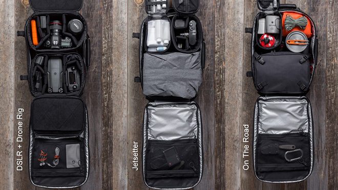 Kısaca V4 ismiyle anılan çanta modüler tasarımıyla ön plana çıkıyor. Kullanım amacınıza göre fotoğraf makinelerini ve kişisel eşyalarınızı koyabileceğiniz farklı ufak çantalar alıyorsunuz. Fotoğraf makinesine özel olarak hazırlanan çantalar darbeye dayanıklı bir şekilde tasarlanmış. Yerleştirdikten sonra cihazların zarar görmesinden korkmadan sırt çantanıza yerleştirebiliyorsunuz. Kıyafete veya kişisel eşyalara özel olanlar ise herhangi bir korumaya sahip değil. Elbise, kozmetik, mutfak malzemesi… Ne isterseniz içine yerleştirebiliyorsunuz. Böylece ihtiyaç duyduğunuz her şeyi sırtınıza yüklenip, seyahate çıkmak daha pratik bir hale bürünüyor.