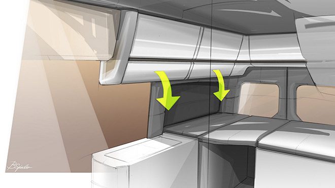 Volkswagen’in T1’den itibaren bu sınıfa renk getirdiği çift gövde rengini devam ettireceğini yeni proje yine iç tasarım detaylarıyla fark yaratma iddiasında. Volkswagen tasarımcılarının pratik ve akılcı çözümlere çok daha fazla odaklanarak geliştirdiği vurguladığı araçta, karavan denildiğinde akla gelen hemen her parça yer alacak. Duş ve tuvalet ihtiyacının karşılanabileceği banyo kısmında yenilenmeye giden ekip aktif bir kullanımın mümkün olacağına işaret ediyor. Mutfak kısmında da ebatsal olarak büyümeye gidildiği, buzdolabı, ocak ve saklama alanlarının bu vesileyle elden geçirildiği de şimdilik elimizde görünen parçalar arasında. Önümüzdeki süreçte daha da detaylanacak olan yeni projeyle ilgili detayları LOG.com.tr üzerinden takip edebilirsiniz.