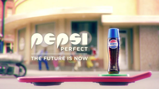 Son zamanlarda Geleceğe Dönüş temalı pek çok şey duyuyor olabilirsiniz. Sebebi, Marty McFly ve Doktor Emmett Brown‘un geleceğe gittikleri ikinci filmde “bugüne” geliyor olmaları. Marty’yle doktor Geleceğe Dönüş 2’de 21 Ekim 2015’e gelir; Marty, Cafe 80’s adlı bir mekana girer. İçeride Beat It çalmaktadır ve ekrandaki bir görüntüden ibaret olan garson Marty’ye günün spesiyallerini saymaktadır. Marty sadece Pepsi istediğini söyler ve önüne Pepsi’nin fütüristik şişeli bir versiyonu olan Pepsi Perfect gelir.