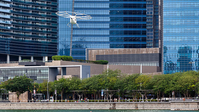 Uçan taksi denildiği zaman akla gelen ilk modellerden Volocopter, kısa süre önce geleceğe yönelik büyük bir gösterim daha yaptı.