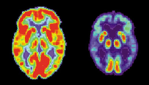 Sağlıklı bir beyin ve Alzheimer’a yakalanmış bir beyin, PET taramalarında böyle görünüyor.