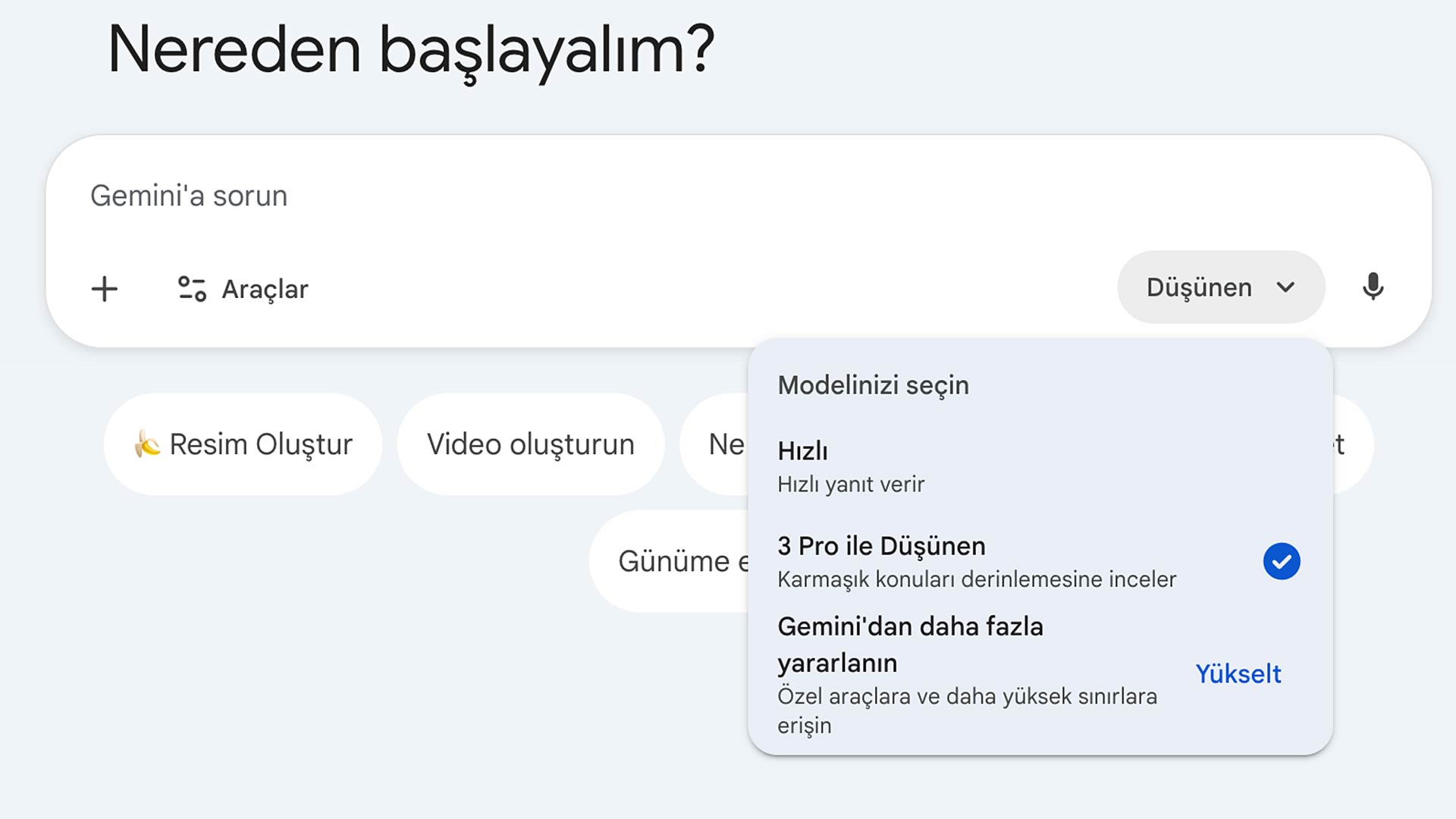 Gemini, normal kullanıcılara şu anda “Hızlı” ve 3 Pro yapay zeka modelini temel alan “Düşünen” olmak üzere iki farklı model seçeneği sunuyor. Düşünen model, cevabı akıl yürütme sürecinden geçirerek detaylandırıyor. Bu nedenle de düşünen modelin cevap vermesi uzun sürüyor. Bazen kullanıcılar farkında olmadan basit soruları da düşünen modele soruyor ve bu durum zaman kaybı yaratıyor. Ortaya çıktığı kadarıyla Google yakında bu durumu ortadan kaldıracak. Düşünen modelin cevabı sağ tarafta çıkacak “Atla” butonuna basılarak Hızlı’ya çevrilebilecek (ChatGPT’deki gibi) ve böylece cevap uzun süre beklenmeden hemen alınabilecek. Gemini bundan önce NotebookLM entegrasyonu ile gündeme gelmişti. Türkiye’de de kullanılabilen Google imzalı yapay zekâ hizmeti NotebookLM’de hazırlanan not defterleri artık doğrudan Gemini’a kaynak olabiliyor. Bunun için Gemini sohbet penceresindeki “+” simgesine basılması ve açılan menüden NotebookLM’nin seçilmesi gerekiyor. Burada, NotebookLM’de hazırlanan not defterleri listeleniyor ve Gemini’a cevabını hazırlarken bu not defterlerinden (birden fazla seçim yapılabiliyor) yararlanması söylenebiliyor.