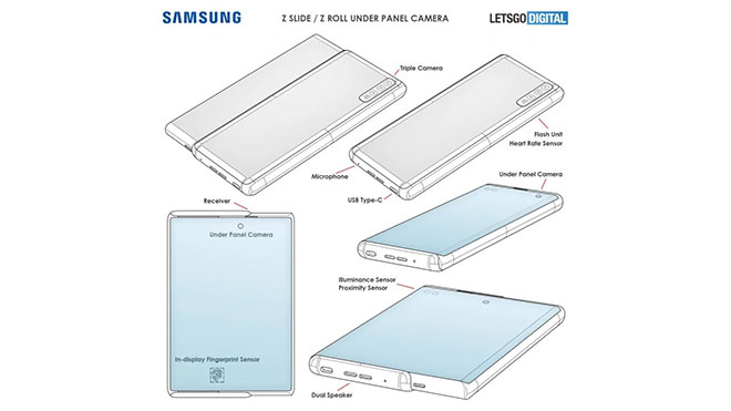 Elbette bu tasarımda değişiklik olabilir ancak telefon şimdilik fazlasıyla kaba görünüyor. Üste ve alta konumlandırılan kızaklar sayesinde genişleyen bu telefon, çizimlere göre parmak izi sensörünü ve selfie kamerasını ekran altında taşıyor. Yani karşımızda eski bir patent yer almıyor.