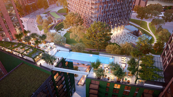Akvaryum tasarımlarında kullanılan 20 cm kalınlığındaki cam malzemeden üretilecek havuza blokların çatısında bulunan spa, bar ve sera gibi tesisler eşlik edecek. Projenin mimarı Ballymore Group’un başkanı ve CEO’su Sean Mulryan, gökyüzünde bloklar arasında inşa edilecek havuz hakkında açıklamada bulundu. Sean Mulryan, havuz keyfinin çok özel bir deneyim olacağını ve havuza girecek kişilerin Londra’nın üstüne yüzdüklerini hissedeceklerini ifade etti. Henüz proje aşamasında olan bu projenin ne zaman hayata geçeceği şuan için bilinmiyor. Bu arada unutmadan söyleyelim. Embassy Gardens’taki daire fiyatlarının başlangıç satış fiyatı 602 bin pound.