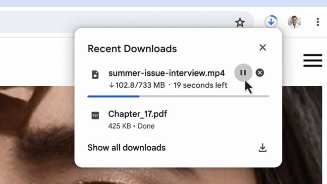 MacOS, Windows ve ChromeOS için herkese gelen yeni altyapı, artık bir dosya indirilmeye başlandığı zaman alt kısımda bir menü açmıyor. Bunun yerine adres çubuğunun sağ tarafına yerleştirilen ve “aşağıya bakan ok” şeklinde tasarlanan simgenin alt menüsü açılıyor, burada son 24 saat içerisinde indirilen tüm dosyalara göz atılabiliyor. İndirme miktarını bu “ok işareti” üzerinden canlı olarak gösteren Google, açılan pencerede indirme durdurma, başlatma ve tamamen silme seçeneklerini de sunuyor. Chrome hepsine ek olarak daha fazla arama önerisi de sunuyor. Bir arama başlattığınızda, aramak isteyebileceğiniz şeyler için altı değil on öneri gösteriliyor.