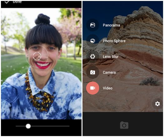 Sade bir arayüzün tercih edildiği uygulamada ayar ve efektler için ekranın solundan parmakla menüyü kaydırmak gerekiyor. Sağ tarafa ise fotoğraf albümü yerleştirilmiş. Uygulama ile kullanıcılara tam vizör görüntüsü sunuluyor. Bu sayede kullanıcıların çekilen karedeki tüm detayları arayüz bileşenleriyle kısıtlanmadan görmesi amaçlanıyor. Ayrıca uygulama ile birlikte blur lens, panorama ve fotoğraf küresi seçenekleri de kullanıcılara sunuluyor. Blur lens özelliği, tıpkı HTC’nin One M8 modelinde olduğu gibi fotoğraf üzerindeki farklı noktaların netlenebilmesine imkan tanıyor. M8 ile kıyaslandığında çok daha dar kapsamlı olan ve yakın plan objeler için çalışan özellik yine de fotoğraf severler için farklı bir seçenek olarak iş görüyor.