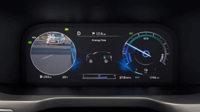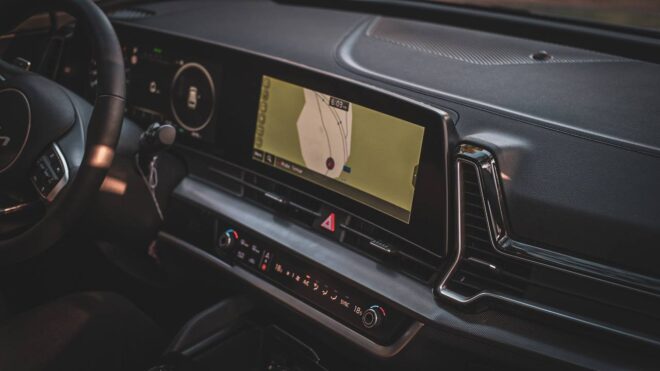 Sportage’ın direksiyonu başına geçtiğimizde ilk dikkat çeken nokta BMW’nin yeni nesil kokpitini akıllara getiren tek çerçeve içerisindeki devasa panel. 12,3 inçlik full dijital gösterge ve 12,3 inçlik multimedya sisteminin kombin edildiği bu yapının yazılım ve görsel tarafta da oldukça tatmin edici olduğunu söyleyebiliriz. Sürüş modlarına göre farklı renk ve temaya bürünen sürücü tarafındaki ekranda, Hyundai’den de tanıdığımız kör nokta görüntüleme sistemi kullanışlılık tarafında çok belirleyici bir faktör.
