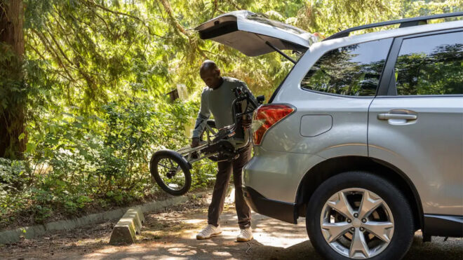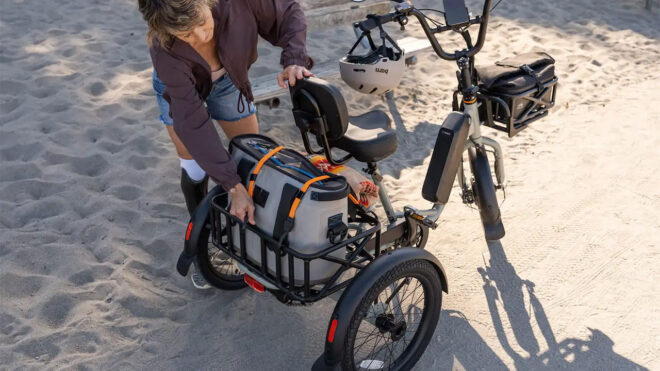 Motoru ve disk freni önde yer alan elektrikli bisiklet modeli Rad Power Bikes RadTrike, katlanır gidona sahip. Bu sayede birçok aracın bagajında taşınabilen 37 kg’lık bisiklet, arka lastiklerinin ortasında belirli bir seviyeye kadar yük taşıyabiliyor. Modelin aynı zamanda önünde de yük taşınabiliyor ancak bunlar için özel bağlantı parçalarının alınması gerekiyor.