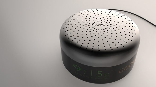 Komal Rathi tarafından tasarlanan bu sistem aromatik alarm olarak tanımlanıyor. Uyanmak için sesin yeterli olmadığı görüşünden yola çıkan Mojo alarmdan yayılan kokular sayesinde güne daha zinde bir şekilde başlatmayı ve uyanma sürecini daha keyifli hale getirmeyi amaçlıyor. Dışarıdan bakıldığında oldukça ufak bir görünüme sahip olan bu alarm çaldığı anda etrafa kullanıcının daha önceden seçtiği kokuları yaymaya başlıyor. Böylece güne isterseniz mis gibi çiçek kokularıyla veya sıcak bir kahve aromasıyla başlamak mümkün oluyor. Tahmin edilebileceği üzere Mojo aynı zamanda bir saat olarak da kullanılabiliyor. Mojo’nun tasarımının üst kısmı tercih edilen kokunun yayılmasına, altı ise saat bölümüne ayrılmış durumda. Geniş ekran saatin yanı sıra tarihi ve günü de gösteriyor. Kullanıcılarına “günaydın” mesajı veriyor.