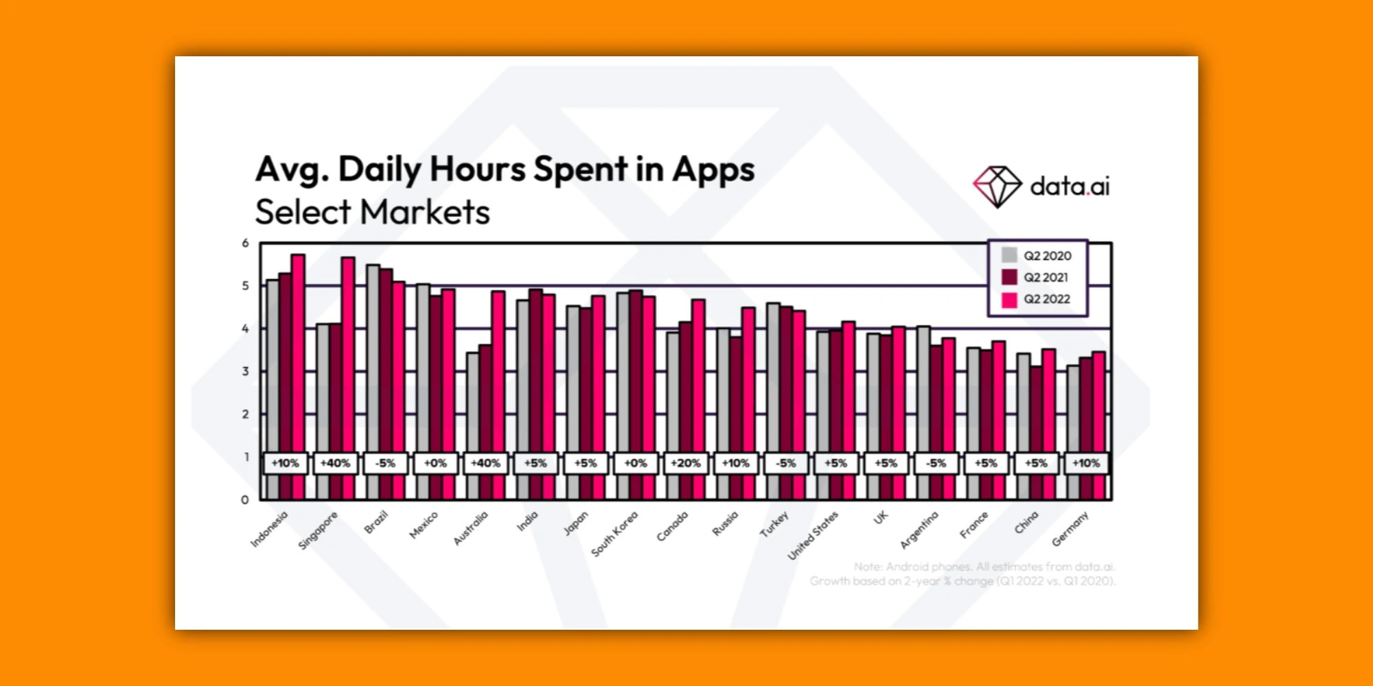 Data.ai tarafından yapılan çeyrek bazlı güncel araştırmaya göre birçok ülkede iPhone ve Android telefon kullanıcıları günde ortalama 4 saatlerini ve fazlasını mobil uygulamalar içerisinde geçiriyor. Bu araştırmanın yapıldığı ülkeler arasında ABD, Endonezya, Singapur, Brezilya, Meksika, Avustralya, Hindistan, Japonya, Güney Kore, Kanada, Rusya, Türkiye ve Birleşik Krallık yer alıyor. Aynı araştırmaya göre Endonezya, Singapur ve Brezilya‘da mobil uygulama kullanım süresi günlük ortalama 5 saati geçiyor. Bu rakamlar elbette günümüzde büyük bir sürpriz olmuyor. Mobil uygulama seçenekleri hayatımızın ayrılmaz bir parçası haline gelmiş durumdalar.