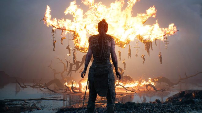 (ve biraz da Kelt mitolojisi) ögelerin harmanlanmasıyla oluşturulmuş bir dünyada geçiyor. Yeni çıkacak God of War’un da bu mitolojiye geçiş yapması ile birlikte uzun zamandır hasret kaldığımız İskandinav açlığımızı giderebileceğiz gibi görünüyor. Hellblade’in bu kültürden beslendiği unsur tanrılar ve canlılardan ziyade dünyanın kendisi ve hikayeleri olmuş. Adım attığınız her toprak bu doğrultuda tasarlanmış ve birbirinden ilginç görsellikler barındırıyor. Eğer bu mitolojiye fazla aşina değilseniz de üzülmeyin; Hellblade’in “toplanabilir” unsuru olarak bazı taşlar belirlenmiş ve bu taşlara dikkatli bir şekilde baktığınızda kuzeye ait birbirinden ilginç hikayeler dinliyorsunuz. Hatta bu hikayeleri de Senua’nın kafasındaki seslerden biri aktarıyor çünkü aslında Senua bunların hepsini zaten biliyor, biz sadece hatırlama anına denk geliyoruz. Tasarlanmış olan dünyanın oynanabilirlik yönünde de hoş bir kullanımı var. Hedefleriniz doğrultusunda aşmanız gereken bazı engeller çıkıyor karşınıza ve bunun için yeri geldiğinde çevredeki elementlere doğru bir açıdan odaklanmanız gerekebiliyor. Oyunun bulmaca kısmının çok güçlü olduğunu söylemek maalesef mümkün değil ancak en azından belirli bir kaliteyi tutturduklarını söyleyebiliriz.