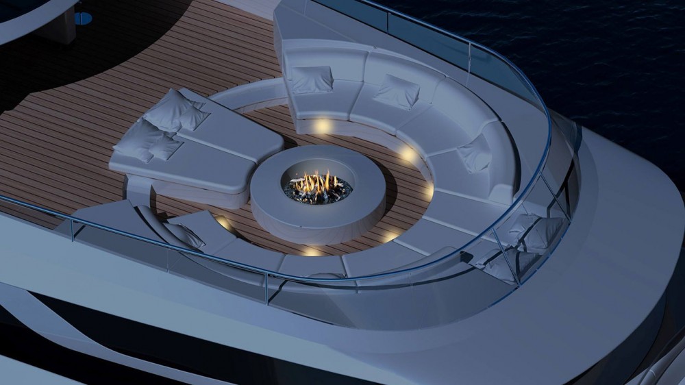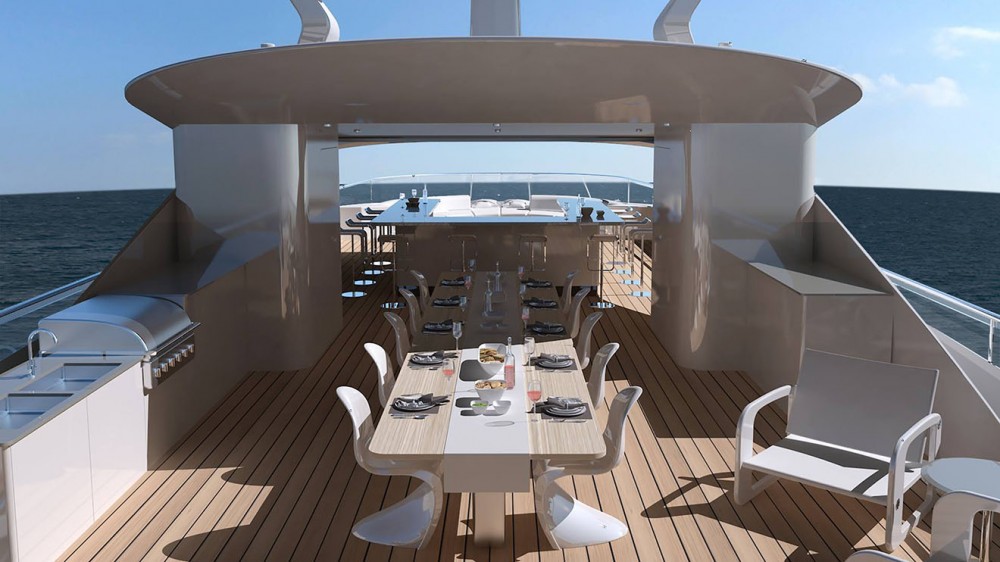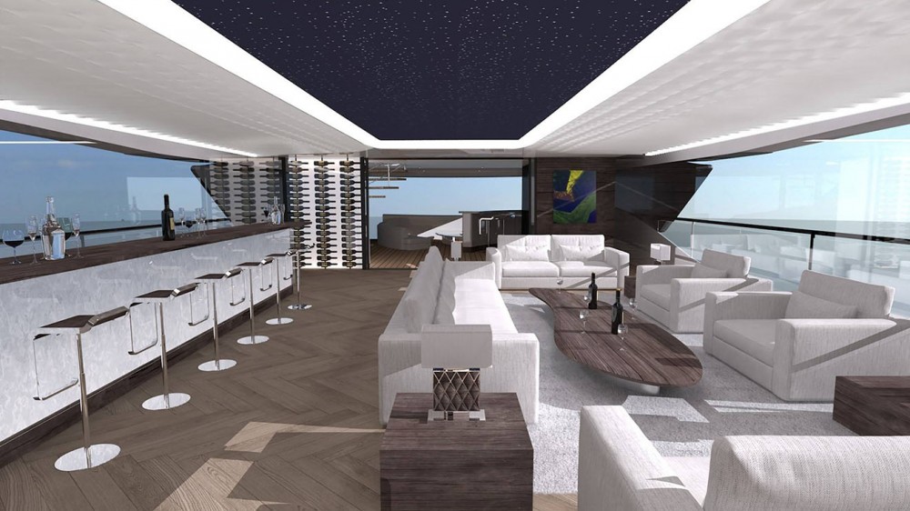 50 metre uzunluğundaki süper yat, sahibi için dizayn edilmiş özel suit odanın yanında altı adet misafir kabini ve 11 kişilik mürettebata özel odalardan oluşuyor. Karbon fiberden üretilmesi planlanan yat, lüksün simgesi ahşap malzemeden de nasibini alıyor. Lüks demişken, yüzme havuzu, güneşlenme alanları, lüks bar ve restoran, sinema salonu, özel bir “beach club” yüzme platformu, yatın sunduğu lükslerden bazıları. Yat sahibi için geliştirilen suit bile kendi balkonuna, şöminesine ve ayrıca ev sinema sistemi ile spor salonunun bulunduğu üst güverteye açılan bir üst güverteye sahip.
