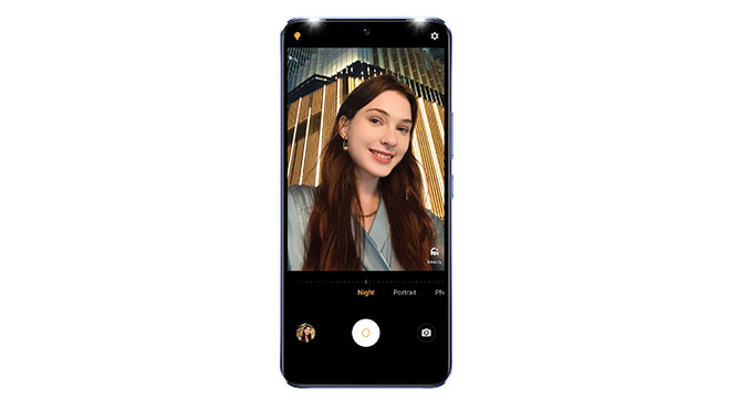 V21 modeli Çift Selfie Spot Işığı özelliğiyle selfie konusunda çıtayı daha da yükseltiyor. Telefon hem ekranın yumuşak ışığını hem de harika gece fotoğrafları ve videoları çekmeyi daha da kolaylaştırmak için ekranın üstüne gizlenen dahili ön flaşları bir arada kullanıyor. Bu sayede tüm yüze eşit olarak dağılan yumuşak bir aydınlatma elde edilebiliyor.