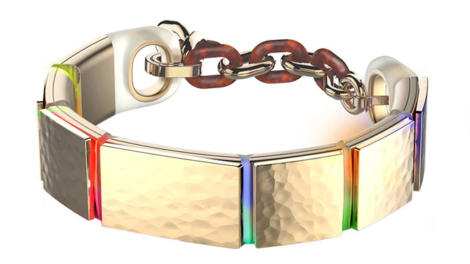 Design Studio uygulamasıyla bilekliğin her bir parçasında kullanılacak taşları seçmek ve her taşın altında yer alacak ışıkları düzenlemek mümkün.