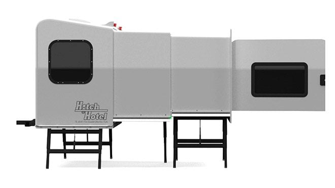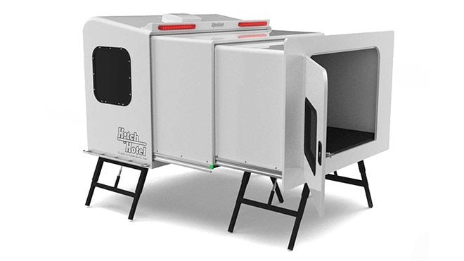 Bir Kickstarter projesi olarak kullanıcıların karşısına çıkan Hitch Hotel, katlanabilir yapısı ve tekerleksiz oluşuyla ciddi bir avantajı da beraberinde getiriyor. Yapım aşamasında havacılık sanayisinde de görülen T6 Alüminyum ve hafif alaşım fiber glass malzemelerden faydalanıldığı gördüğümüz aksesuar, araç tipine göre özel olarak boyutlandırılabilmesiyle dikkat çekiyor. Üç kademeli olarak uzayabilen bir mimarisi bulunan Hitch Hotel bu haliyle 7 metreye kadar bir alan vadediyor. Marka tasarımcılarına göre kabin tam kapasitede kullanıldığı zaman üç kişinin rahatlıkla konaklayabileceği bir oda da hizmetimize hazır.