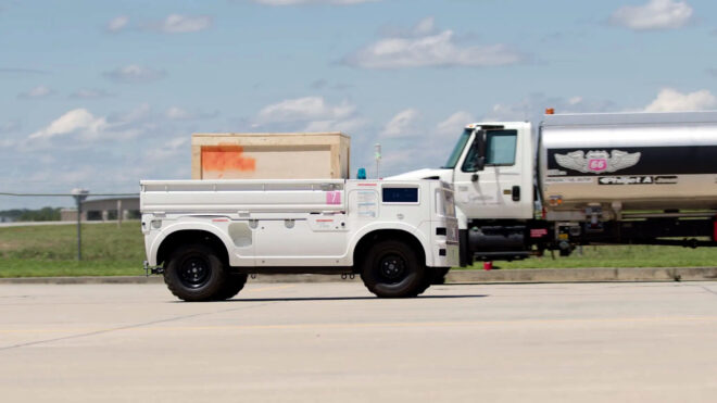 Autonomous Work Vehicle şimdi ise havaalanlarındaki rutin işler için test edilmeye başlandı. Şu an prototip versiyonuyla ABD’deki Toronto Pearson Havaalanı içerisinde denemelere alınan araç, daha önceden programlanan rotalarda kendi başına giderek güvenlik ihlallerini aramak adına havaalanı çitlerinin etrafında tur atmak, pist etrafında ufak çaplı kargo taşımak, ihtiyaç olduğunda bagaj arabalarını çekmek, gelecek planlamaları için haritalar oluşturmak ve tehlikeli engelleri tespit etmek gibi görevler üstlenebiliyor. Elektrikli olduğundan temiz ve güvenli olan araç, araziye uygun bir yapıya sahip olduğundan sahada hiçbir sorun yaşamadan yol alabiliyor, olası işgücü sıkıntılarında büyük fayda sağlayacak gibi görünüyor.