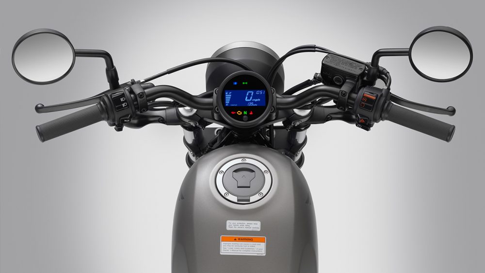 2017 Rebel serisinin tasarımına baktığımızda tarihsel altyapıya sahip bir modernizasyonla karşılaşıyoruz. 80’li yıllarda üretilen modelin yer yer tasarımsal detaylarına rastladığımız seride ilk dikkatleri çeken markanın 11.2 litrelik ikonik benzin deposu oluyor. Honda, 2017 Rebel serisinin gösterge panelinde siyah ve mavi renk ağırlıklı LCD ekrana yer veriyor. Rebel ailesinin lastik tercihlerine baktığımızda 16 inch olan jantlarla birlikte önde 130/90-16, arkada 150/80-16 değerleriyle karşılaşıyoruz. Serinin aks mesafesine baktığımızdaysa 1.488 mm‘lik değerin sunulduğunu görüyoruz. 2017 Rebel ailesi dahilinde sunulan renklerse sarı,siyah, kırmızı ve mat metalik gümüş olarak çeşitlilik gösteriyor.