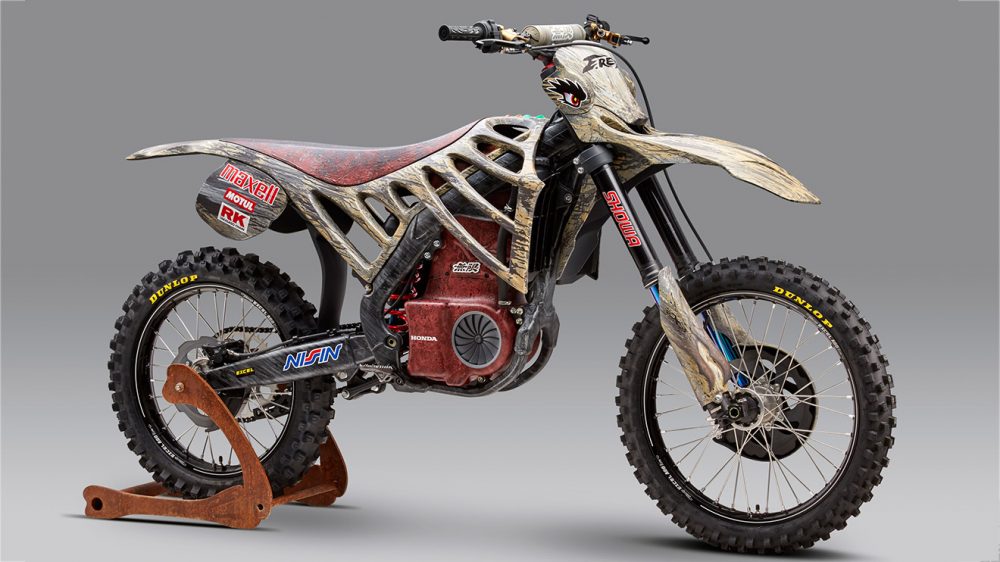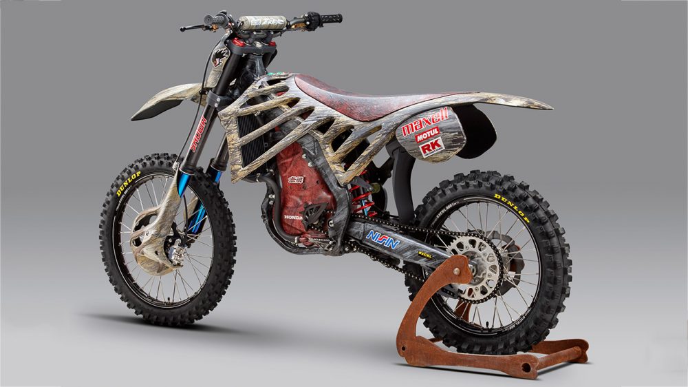 Mugen ekibinin dinazor yapısıyla birlikte geliştirdiği ilk projenin Honda’nın CRF 250 modeli üzerine şekillendiğini görüyoruz. E.Rex adı verilen ve teknik detayları henüz açıklanmaya projenin detayları cross sınıfının tüm karakterini yansıtacak şekilde ortaya çıkıyor. Motosikletin tasarım sürecinde alüminyum ve plastik parçalar kullanılıyor.