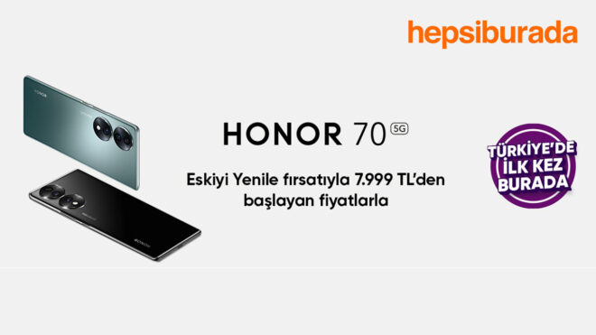 Hakkında bilinmesi gereken tüm detaylarına burada yer verdiğimiz Honor 70, Zümrüt Yeşili ve Gece Yarısı Siyahı renk seçenekleriyle beraber Hepsiburada üzerinde satışa sunuldu. Türkiye’de ilk defa Hepsiburada’da satışa sunulan telefon için belirttiğimiz gibi bir “eskiyi yenile kampanyası” sunuluyor. 8 GB RAM + 128 GB depolama için normalde 12.999 TL satış fiyatı bulunan Honor 70 modeline, Hepsiburada tarafından düzenlenen eskiyi yenile kampanyasıyla 7.999 TL’den başlayan fiyatlarla sahip olma imkânı 14 Ekim – 28 Kasım 2022 tarihleri arasında geçerli. Kampanyanın tüm detayları ise direkt olarak burada yer alıyor.