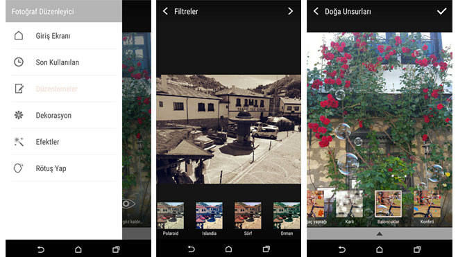 Kamera uygulaması kullanışlı bir arayüz sunuyor. Ayarlara ulaşmak basit ve genel kamera ayarları haricinde çok fazla ayar yapmak da zaten mümkün değil. Çekim modları arasında sadece ekranda parmağınızı yukarı aşağı sürükleyerek geçiş yapabiliyorsunuz. Çekilen fotoğrafları düzenlemek, efekt eklemek veya eğlenceli rötuşlarla canlandırmak da mümkün. Sosyal medyada sıklıkla fotoğraf paylaşmayı sevenler fotoğraf düzenleme seçeneklerini beğeneceklerdir.