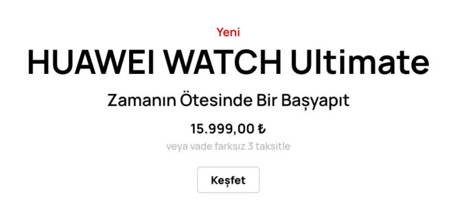 Huawei Watch Ultimate için açıklanan Türkiye 15.999 TL (Yüksek ihtimalle başlangıç fiyatı) oldu. Kendi sınıfındaki bazı rakiplerinden ucuz ancak genel olarak pahalı bir seçenek olan akıllı saat, premium bir seçenek olarak üst seviye malzemeler üzerine kuruluyor ve iki farklı renkte elde edilebiliyor. Henüz spesifik Türkiye satış tarihi verilmeyen akıllı saat, firma tarafından “Zamanın Ötesinde Bir Başyapıt” mottosu ile öne çıkarılıyor. Geçtiğimiz hafta modelin Türkiye satışı hakkında bir açıklama yapan Huawei Türkiye, şunları aktarmıştı: “Huawei’nin en son başyapıtı Huawei Watch Ultimate, birçok kişi tarafından kıskanılan lüks görünümü ve stiliyle beraber sürekli kendini aşmak isteyen kaşifler için yapılmış bir akıllı saat. Türkiye’de tüketiciler, çok yakında Watch Ultimate’ı Huawei Online Mağaza’dan satın alabilecekler.” Bizim detaylarına burada yer verdiğimiz lüks akıllı saat hakkında Huawei Türkiye’nin yaptığı özet ise şöyle: “Ultimate, bu başyapıtı oluşturmak için kullanılan bir dizi özellik, üst düzey tasarım ve malzemelerle pazardaki akıllı saatler için yeni bir çıta belirliyor. Birinci sınıf Zirkonyum bazlı sıvı metal kasa, Nano-Tech seramik çerçeve ve safir saat kadranı gibi dayanıklı malzemelerle tasarlanan saat ister karada ister dağın tepesinde veya denizin dibinde olsun, kullanıcıları her türlü açık hava macerasına veya önemli sosyal etkinliklere hazırlamak için lüks estetik ve akıllı özellikler sunuyor.