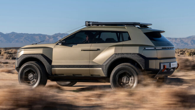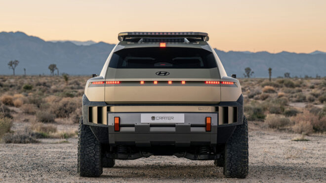 Konsept araç hakkında Hyundai’den gelen açıklama şöyle oldu: “Kompakt bir off-road SUV olarak tasarlanan CRATER Concept, dayanıklılığı ve gücü görsel olarak yansıtan cesur tasarımıyla dikkat çekerken, keşif ve macera ruhunu simgeleyen bir tasarım çalışması olarak konumlanıyor. Konsept araç, Kaliforniya’daki Hyundai America Technical Center bünyesinde, ekstrem çevre koşullarından ilham alınarak geliştirildi. CRATER Concept, Hyundai’nin IONIQ 5 XRT, SANTA CRUZ XRT ve PALISADE XRT PRO modellerinde görülen XRT ruhunu daha ileri bir seviyeye taşıyor. Güvenlik, bağlantı ve işlevselliği ön plana çıkaran tasarım detaylarıyla konsept model, hem estetik hem de performans açısından güçlü bir karakter ortaya koyuyor. Hyundai’nin “Art of Steel” tasarım dili, çeliğin gücünü ve esnekliğini heykelsi bir estetikle birleştiriyor. Akıcı hacimler ve keskin çizgiler, güçlü ama zamansız bir duruş ortaya koyarken, CRATER Concept’in dış yüzeyinde bu yaklaşım net bir şekilde hissediliyor. CRATER Concept’in dış tasarımı; keskin gövde hatları, güçlü alt koruma plakaları, geniş çamurluk yapısı ve yüksek yaklaşma-açılma açılarıyla zorlu arazi koşullarına hazır bir form sunuyor. 18 inç’lik altıgen formdaki jantlar ve 33 inç özel off-road lastikleri hem görsel güç hem de performans avantajı sağlıyor. CRATER Concept’in iç tasarımı, teknolojiye meraklı ve maceracı kullanıcılar için fonksiyon odaklı olarak kurgulandı. Yumuşak ancak dayanıklı malzemeler, sert yapısal detaylarla bir araya getirilerek hem konfor hem de dayanıklılık sağlanıyor. Kabin içinde açıkta bırakılmış takla kafesi, bütünleşmiş tutma kolları ve dört noktalı emniyet kemeri gibi unsurlar güvenli keşif hissini güçlendiriyor. Dijital deneyim tarafında ise; BYOD (Kendi Cihazını Getir) yaklaşımı, Head-up display, Çok fonksiyonlu off-road kontrol ünitesi ve Kar, kum ve çamur modları bulunuyor.