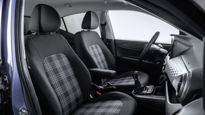 Otomobilin iç mekanındaysa mavi renkli ambiyans aydınlatmaları dikkati çeken ilk yenilik olarak öne çıkıyor. Yeni bir eklenti olan bu “Mor Paket”, otomobilin sportif dış tasarımına eğlenceli bir hava katıyor. Dikey mor çizgilere sahip ekose kumaş koltukların yanı sıra dikiş ve havalandırma deliklerinde de mor renkli detaylar bulunuyor. Hyundai i10 N Line ise sportif difüzöre sahip tamponlar, marşpiyeler ve içerideki kırmızı dokunuşlarla motor sporlarından ilham alan tasarımını en iyi şekilde yansıtıyor.