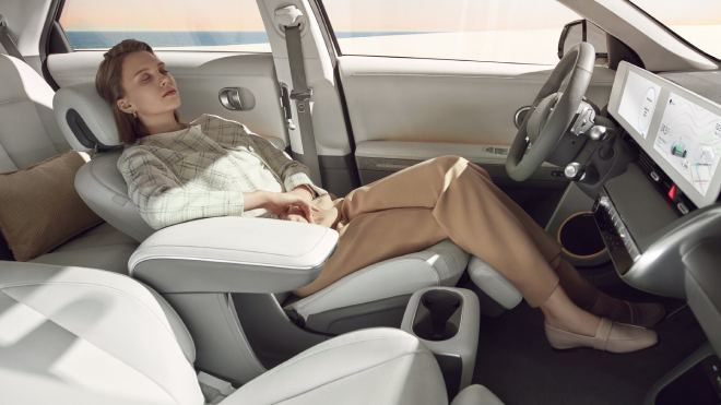 IONIQ 5’in iç mekanında da “Fonksiyonel Yaşam Alanı” teması var. Koltuklar ile birlikte kokpit de 140 mm’ye kadar hareket edebiliyor. Universal Island adıyla somutlaşan hareketli iç mekanda bataryalar için düz bir zemin sağlanırken ayrıca kullanıcıların konforuna göre mekan genişliği isteğe bağlı olarak ayarlanabiliyor. Ayrıca, koltuklar, tavan döşemesi, kapı döşemeleri, zemin ve kol dayama gibi iç mekandaki donanımların çoğu, geri dönüştürülmüş PET şişeler, bitki bazlı iplikler, doğal yün iplikler ve ekolojik deri gibi çevre dostu ve sürdürülebilir kaynaklı malzemeler kullanılarak üretiliyor. Ioniq 5, ikinci sıra koltuklar tamamen katlandığında yaklaşık 1.600 litreye kadar bir yükleme alanı sunabilen bir otomobil. Koltuklar tam dik konumdayken ise bu rakam 531 litre gidi sınıfının üzerine giden bir değerde.