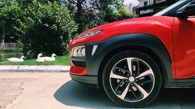 Kona’nın tasarım süreci içerisinde yer alan isimlerin geçmişlerine baktığımızda Audi ve Lamborghini gibi ciddi isimlerle yollarımız kesişiyor. Geçtiğimiz yıl içerisinde eski BMW M Direktörü Albert Biermann önderliğinde kurulan “N” departmanı, aslında Hyundai’nin gelecek vizyonunu altını dolduracak kişiler ve bir ekiple gerçekleştirdiğini gösteriyor. Peki böylesine önemli kariyere sahip isimlerin masa üzerinde kafa yorduğu yeni tasarım diliyle bizleri neler karşılıyor? Gerçekleştirdiğimiz 650 kilometrelik geniş çaplı yolculuk boyunca şunu çok net bir şekilde söyleyebiliriz ki Kona’nın tasarımı cinsiyet veya yaş aralığı ayırt etmeksizin dikkat çekiyor. Ön bölümde ince bir çizgi formunda verilen LED gündüz farları ve hakim olarak kendisini hissettiren yeni ızgara bu işin temel taşı. Sonrasında kademeli olarak gelen ana ışıklandırma ve sis farları Citroen C3 Cactus ve Nissan Juke örneklerinden anımsayabileceğimiz bir yapıyı barındırıyor.