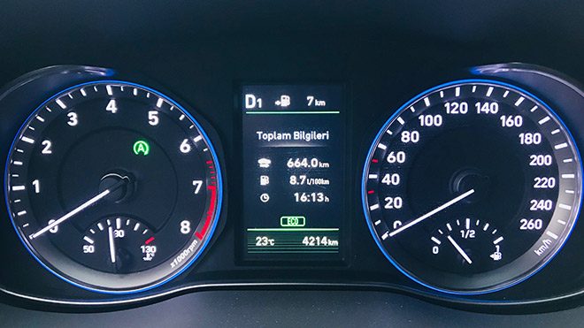 Tüm bu parçaları anlamlı hale getirecek ilk nokta ise şüphesiz tüketim. Hyundai’nin paylaştığı veriler bizlere 100 kilometre için, 7,1 litre gibi bir ortalama veriyor. 650 kilometrelik testimiz boyuna bizim elde ettiğimiz rakam ise 9,8 ile civarında gerçekleşti. Trafik ve uzun yol deneyiminin bir araya geldiği rotada 9 litrenin altına inmeyi başarsak da, performanslı kullanımla birlikte bu rakamın kolaylıkla 12 litrelere ulaşma potansiyeli olduğunu söylemek gerekiyor. Ülkemizdeki benzin fiyatlarını düşündüğümüzde kullanıcıların kararını doğrudan etkileyecek bir parça önümüzde duruyor. Motorun sunduğu bu verileri tamamlayan nokta ise sürüş dinamikleri. Kona süspansiyon sönümlemesi konusunda bizce başarılı bir otomobil. 1,6 litrelik versiyonda arka bölümü çok noktadan bağımsız geometriyi barındıran aracın yol tutuş performansı da beklentiyi karşılıyor. 1.0 litrelik versiyonda arka bölümü torsiyon çubuğu olan Kona’da en rahatsız edici nokta lastik sesinin kabine olan yansıması. 18 inç’lik jantların da etkisiyle ortaya çıkan bu durum dikkat edilmesi gerekenler arasında.