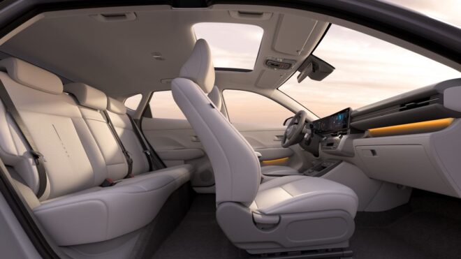 Yeni Kona’da iç yaşam alanı tarafında da geliştirmeler bizi bekliyor. Maksimum yaşam alanı sağlamak için bir önceki nesle göre 150 mm daha uzun olarak tasarlanan modelin toplam uzunluğu 4.355 mm’ye çıkarılırken, yine önceki modele göre genişliği 25 mm ve dingil mesafesi de 60 mm artmış durumda. Kokpit tarafında paylaşılan ilk detaylara baktığımızda 12,3 inçlik çift geniş ekranlar ve kayan kokpit tasarımı sayesinde yüksek teknoloji mobilite izlenimi öne çıkıyor. Ortam aydınlatması, kullanıcı deneyimini ve rahatlığını artırırken, orta konsoldan direksiyon arkasına taşınan vites kolu sayesinde de daha geniş bir iç hacim elde ediliyor.