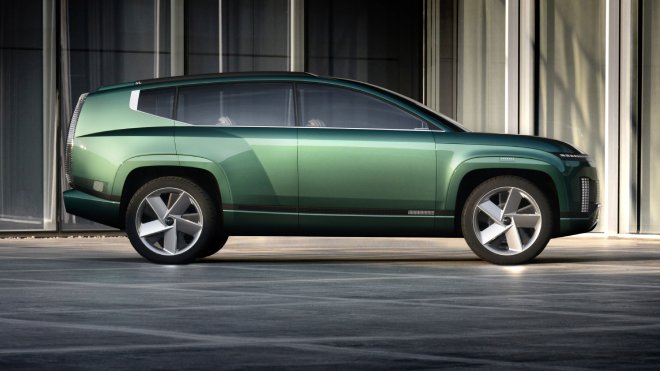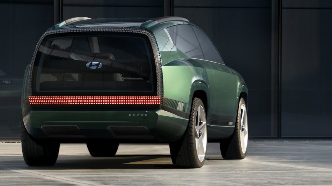 SEVEN, geleneksel SUV modellerden farklı olarak özel bir aerodinamik siluete sahip. Alçaltılmış bir motor kapağı, aerodinamik tavan çizgisi ve uzatılmış dingil mesafesi ile içten yanmalı SUV’lardan net bir şekilde ayrılıyor. SEVEN’ın aerodinamik yapısına ek olarak tasarımda yer alan minimal formlar da hacimsel anlamda olduğundan daha güçlü bir duruş sergilemesini sağlıyor. Araçta daha güçlü bir yol tutuşu için, fren soğutma veya düşük sürtünme gereksinimlerine bağlı olarak açılan ve kapanan entegre “Aktif Hava Kanatları”na sahip tekerleklerle donatılmış. SEVEN, gecenin karanlığında görsel şov yapan ve aynı zamanda IONIQ’in marka kimliği haline gelen Parametrik Piksel ışıklara da sahip. Parametrik Piksel aydınlatma grubu, dijital ve analog stilleri birbirine bağlayan ortak bir tasarım dizisi oluşturuyor. 2024 yılında seri üretim form olan Ioniq 7 ile asfalta inecek olan bu tasarım dilinin şimdiden ilgi çektiğini söylemek mümkün.