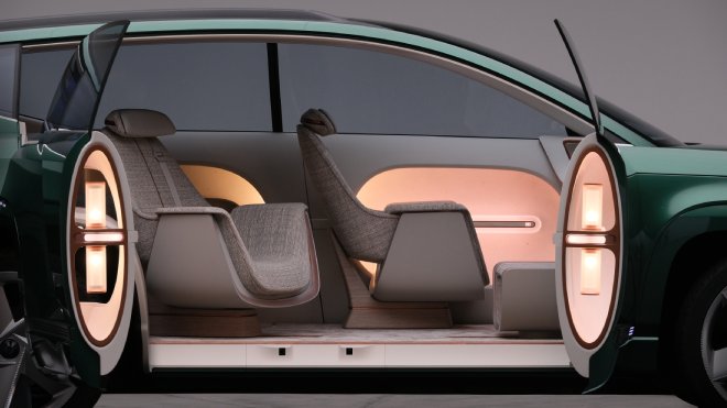 SEVEN’ın dingil mesafesi, kokpit tarafındaki genişliği artırmak için mümkün olduğunca yüksek tutularak 3,2 metreye kadar çıkarılmış durumda. Burada tasarım özelliklerinden de faydalanan mühendisler, düz zemin sayesinde de geleneksel sıra tabanlı koltuk düzenlemesine bir alternatif olarak bir salon hissiyatı yaran yaşam alanı sunuyor. Sütunsuz kapılar, iç mekana giriş ve çıkışı kolaylaştırırken aynı zamanda modern bir tavan çizgisi ile de birinci sınıf bir ambiyans oluşturuyor. Hyundai’nin gelecekteki otonom mobilite vizyonunu da yansıtan bu özel konsept, sürücü koltuğu kullanılmadığında gizlenen ve geri çekilebilen bir kontrol çubuğuna da sahip. Geleneksel kokpitlerden farklı olarak ultra ince bir düzene ve entegre ekranlara yer verilirken, buna ek olarak iç mekanda evlerdeki gibi geniş bir salon deneyimi sunuluyor. Koltuk düzeni, döner şekilde ve kavisli bir yapıda hazırlanıyor.