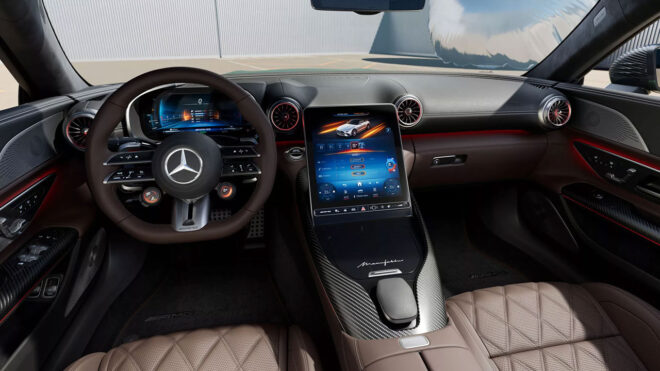 Mercedes-AMG SL63 S E Performance, lüks yaşam alanında büyük bir sürpriz barındırmıyor. Firmanın güncel kokpit tasarımını karbon fiber detaylar ile taçlandıran araç, lansman versiyonunda kahverengi ile siyahı harmanlıyor ve sportif direksiyonu ile inanılmaz bir sürüş keyif yaşatacak gibi görünüyor. Henüz fiyatı açıklanmayan araç, bazı tahminlere göre 200 bin dolardan ucuz olmayacak.