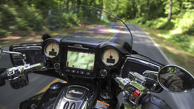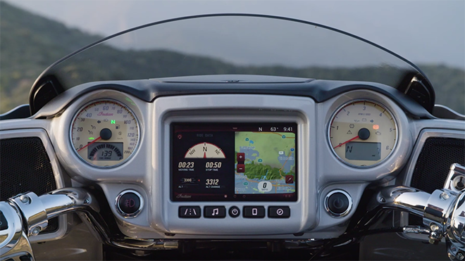 Indian’ın iddiaları doğruysa Ride Command şimdiye kadar geliştirilmiş hem en büyük hem de en yüksek çözünürlüklü motosiklet ekranına sahip. 7 inçlik dokunmatik ekran 800 x 480 piksel çözünürlüğünde. Motosiklet hakkındaki tüm bilgilerin yanı sıra anlık navigasyon özelliği de sunan ekran eldivene de duyarlı.