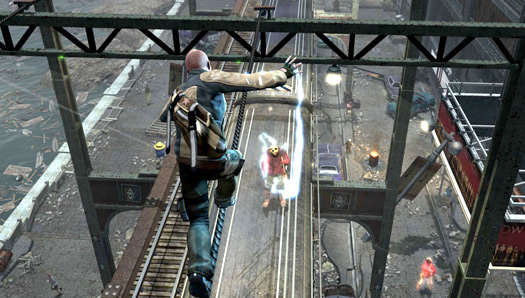 Cole normal bir insanın tırmanamadığı yerlere tırmanabiliyor. Bu size çok değişik saldırı imkanları tanıyabiliyor. Sanırım bunu şöyle tanımlayabiliriz: Oyunlarda genel olarak rakibimize yatay bir düzlemde saldırırız. Oyun da çizgisel olarak yatay bir şekilde akar. Infamous da dikine saldırılar yapabiliyorsunuz. Örneğin, bir düşman grubuna pusu kuracağınız zaman bir çatıya çıkın, saldırıya hazırlanın. Düşman grubu tam altınızdan geçerken üzerlerinde atlayarak elektrik verebilirsiniz. Yani illaki düşmanlarınızı karşınıza alıp savaşmak zorunda değilsiniz.