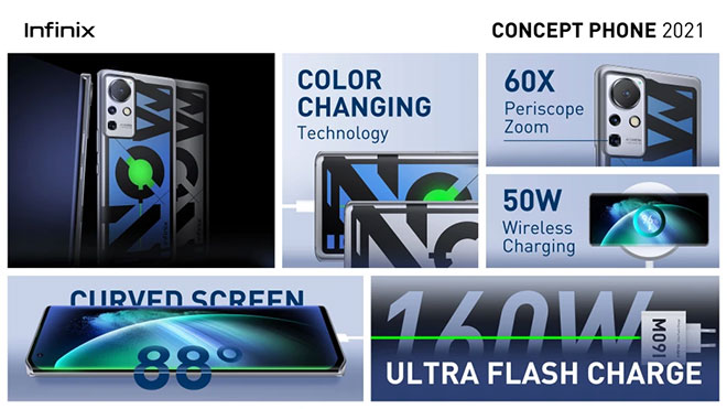 Daha önce Infinix Zero X olarak da geçen Concept Phone 2021, isminde de geçtiği üzere konsept bir telefon modeli. Bu açıdan model birçok kalemde sınırları zorluyor.