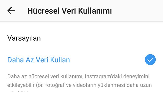 Eğer Instagram’da geçirdiğiniz zamanın internet paketinizi tüketmesinden korkuyorsanız, bunun da bir çözümü var. Bunun için önce kendi profilinizi açıyorsunuz. Ardından ekranın sağ köşesinde yer alan üç nokta simgesine basıyorsunuz. Açılan ayarlardan aşağı doğru inerek “hücresel veri kullanımı”nı buluyorsunuz. Burada “daha az veri kullan” seçeneğini işaretlediğinizde fotoğrafların yüklenmesi biraz daha uzun sürüyor ancak daha az mobil veri harcıyorsunuz.