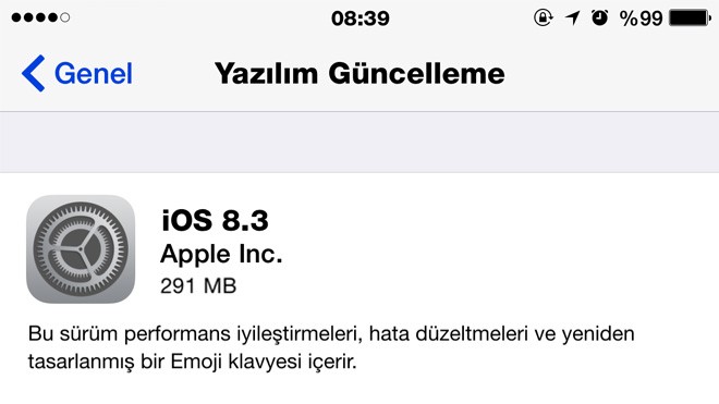 iOS 8.3 güncellemesi, performans iyileştirmeleri, hata düzeltmeleri ve yeniden tasarlanmış bir Emoji klavyesiyle geliyor. Ancak güncellemenin en önemli detayı Siri’nin Türkçe desteği almış olması. Artık ana ekran tuşuna uzun süre basılı tuttuğunuzda Siri Türkçe olaran “Nasıl yardımcı olabilirim?” diye soruyor. Kelimeleri çok net şekilde anlayıp ayırt edebilen Siri sesli ve yazılı olarak yanıt veriyor. Komutlara göre çözümler sunan Siri’ye en yakın hastaneyi sorabileceğiniz gibi, sadece sohbet de edebilirsiniz. Ayrıca sosyal ağlardaki paylaşımları da Siri üzerinden yapabilirsiniz.