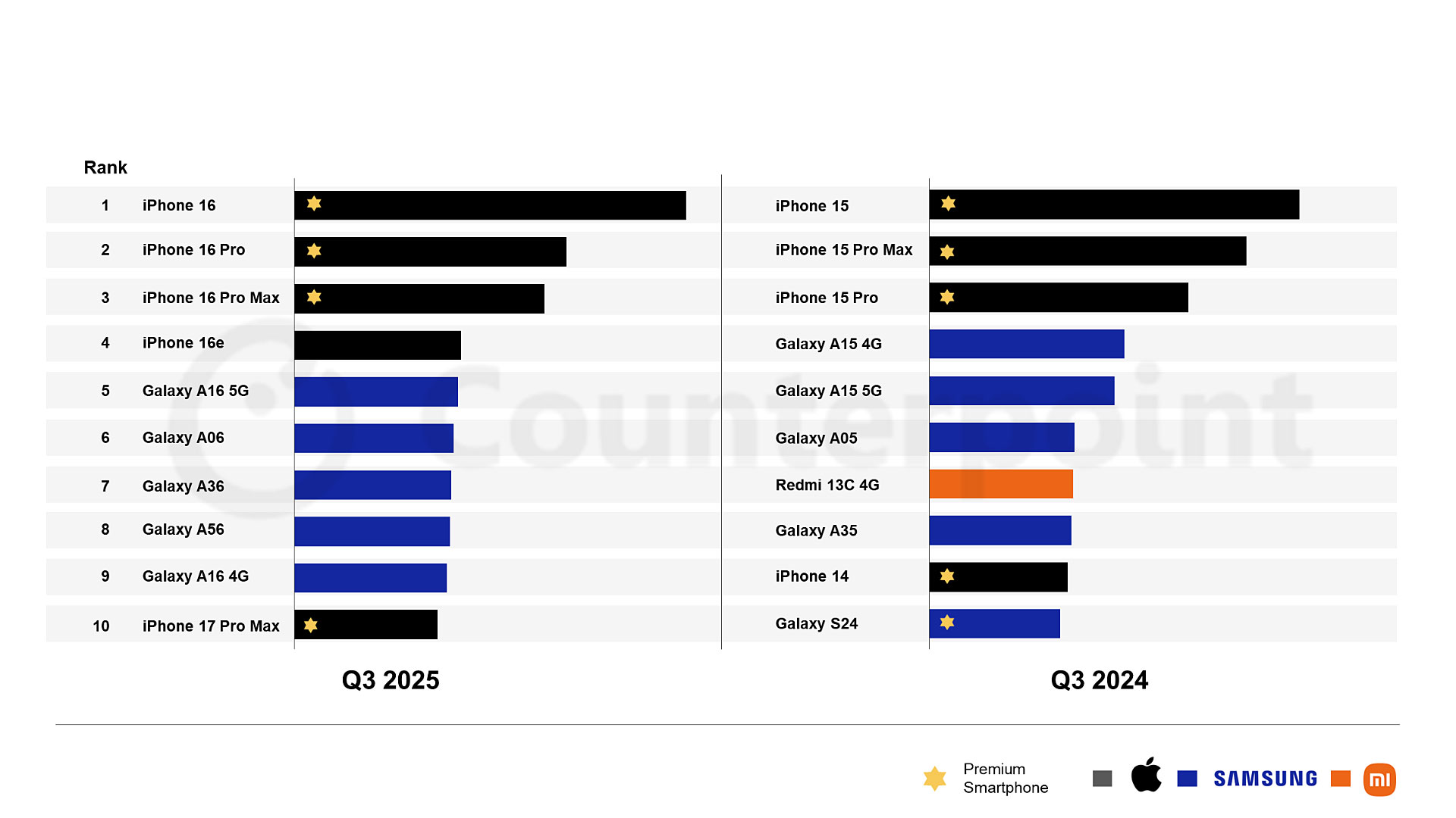 Counterpoint Research tarafından paylaşılan verilere göre iPhone 16, 2025’in üçüncü çeyreğinde en çok satılan telefon oldu.