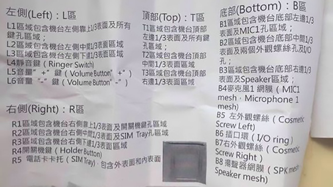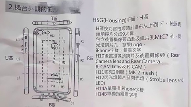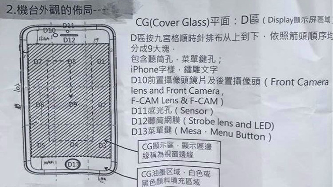 Çizimlerde her kısım ayrı ayrı açıklanıyor ve bunlar arasında dikkat çeken birkaç bölüm bulunuyor. Öncelikle ön kameranın alt kısmında bir LED ışık bulunduğu belirtiliyor ancak detaylardan söz edilmiyor. Bu LED ışığın bildirimleri mi göstereceği yoksa LED flaş görevi mi göreceği bilinmiyor. Bir diğer detay ise home tuşuyla ilgili. Bu tuşun dokunmatik olacağı ve titreşimli geri bildirim vereceği söyleniyordu. Fakat çizimde normal bir tuş olarak lanse ediliyor. Son olarak iki adet hoparlör bölümünün bulunduğu da görselde doğrulanmış oluyor.