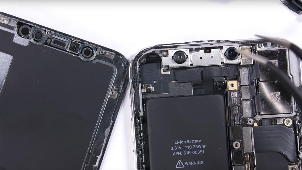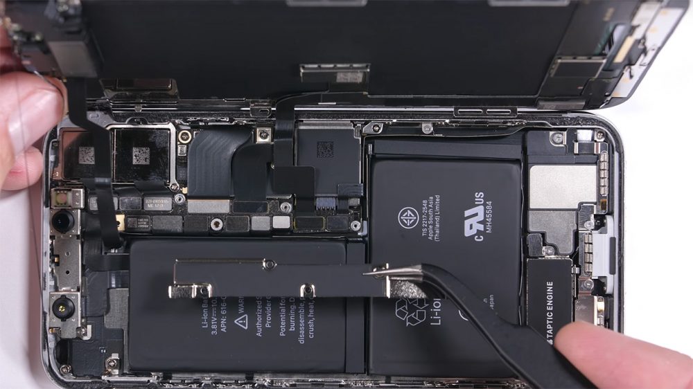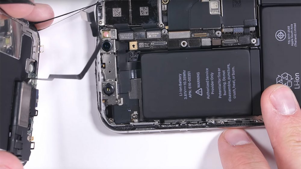 iPhone X’in içini açmak diğer iPhone modellerinden çok farklı olmuyor. Alttaki vidaları çıkarttıktan sonra ekrana fazlasıyla ısı uygulamak ve gövdeden nazik bir şekilde ayırmak gerekiyor. Bu işlemlerin ardından telefon bir kitap gibi açılıyor. Ekranın üstünde yer alan çentiğin OLED ekrana değil cihazın ana gövdesine bağlı olduğu anlaşılıyor. Vidaların özenle sökülmesiyle pek çok parçayı değiştirmek mümkün. Pili değiştirmek içinse sabitleyici yapıştırıcının dikkatle çekilip çıkartılması gerekiyor. Pilin alıştığımızdan farklı olarak L şeklinde olduğunu da unutmamak gerekiyor.