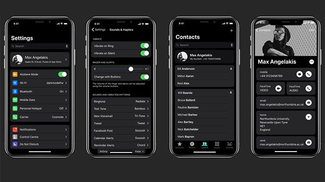 iOS 11’in tanıtımının ardından da bu özelliğin gelmemesi akıllarda soru işareti oluşturmuştu. Apple bilindiği üzere ilk kez iPhone X modelinde OLED ekran tercihinde bulundu. LCD ekranlara kıyasla daha az enerji tüketen OLED ekran, tek bir OLED, bir piksel boyutunda olduğu için her bir piksel bağımsız olarak aydınlanıyor veya kararıyor. Tüm pikseller kapandığında OLED ekranlı iPhone X, tamamen siyah görünüyor. iPhone X’da siyah arayüz kullanılması telefonun daha az enerji harcamasına imkan tanıyor. Maximos Angelakis isimli bir grafik tasarımcısı gece modu özelliğinin iPhone X’da nasıl görüneceğini merak eden kullanıcılar için güzel bir çalışma hazırladı. Paylaşılan konsept görsellere bakıldığında koyu renklerin hakim olduğu iOS işletim sistemi iPhone X’da oldukça etkileyici görünüyor.